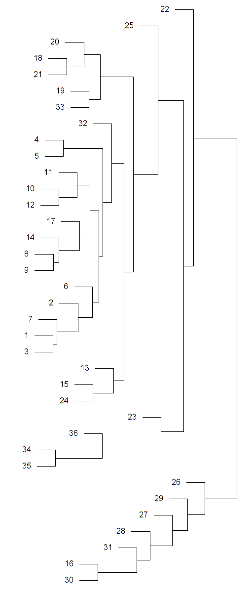 Here is a dendrogram of the 36 components: