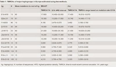 I would have liked to see dating of the older R1bs and comparison to the ancient firmly dated R1.